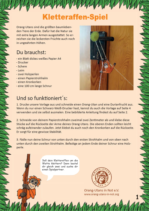 Bastelspaß für Groß und Klein. Bastle dir deinen eigenen Hampel-Orang-Utan und lass ihn tanzen.